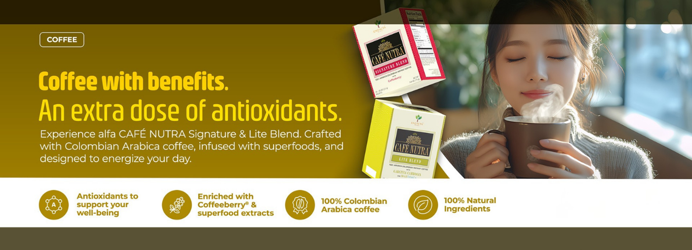 alfa CAFÉ NUTRA LITE BLEND instant coffee contains Garcinia Cambogia which is a fruit containing the active ingredient, Hydroxycitric Acid (HCA). HCA may help to suppress appetite and cravings. Our LITE BLEND also contains WellTrim®iG, an authentic certified extract of African Mango, a centuries-old source of health and wellness in its native land. For an added boost of nutrition, LITE BLEND also includes ENZACTA's alfa PXP FORTE specialty rice blend.